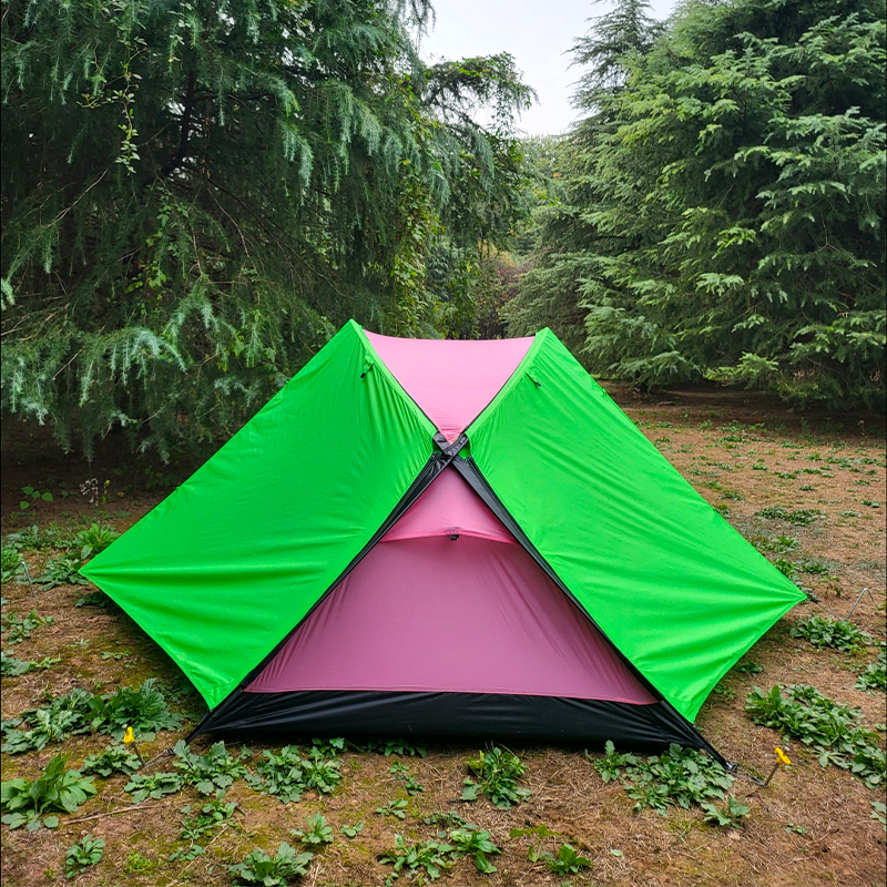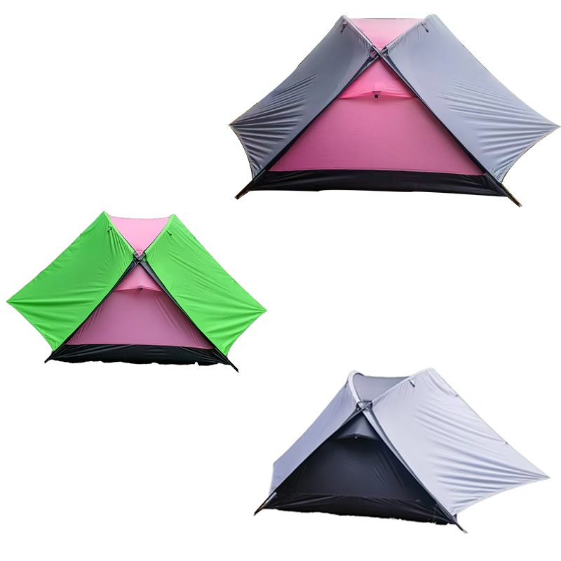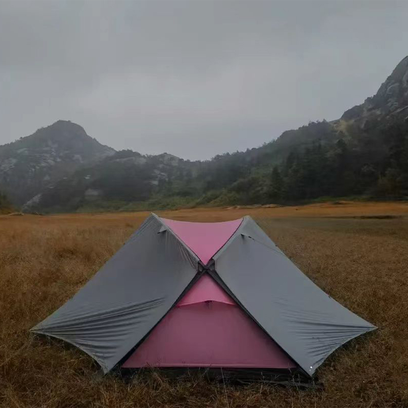 Style:Straw hat tent Waterproof index:1500-2000mm Material:15D nylon monosilicon 帐底材质:15D black nylon cloth Season:Four-season Tent Structure:One Bedroom Pole Material:Aluminum rod Number of layers:double Color:①Pink+Gray②Pink+Green③Gray+Black Price:$177 Weight:2.05kg Tent size:L70+125+70*W220*H110cm Package size:13*13*42cm Capacity:1-2people Build situation:Construction Based on Need Accessories:ground nails*10, wind rope*6, storage bag*1, diameter 8.8mm aluminum rod*2