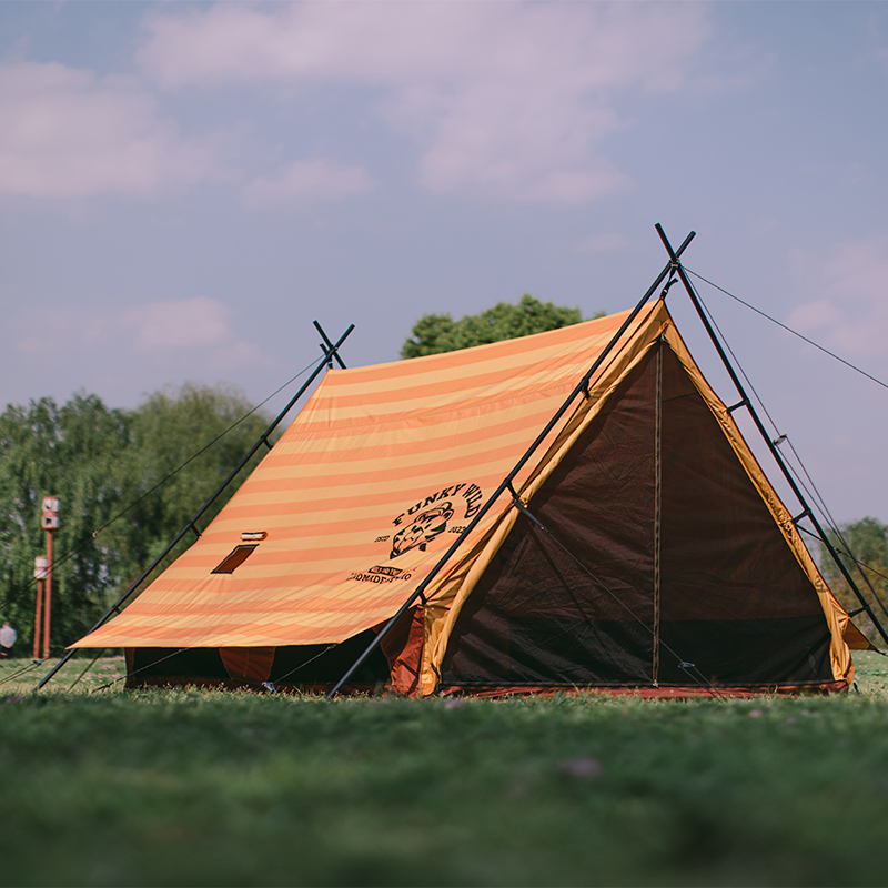 Style:Ridge tents Water resistance index:3500 mm Bottom waterproofing index:5000 mm Material:210g striped polyester cotton B4 mesh Bottom material:300d oxford cloth Seasons:Four-season Tent Structure:One Bedroom Pole Material: aluminum Number of layers:single Color:orange Price:$480 Weight:18.5kg Tent size:L290*W270*H195cm Package size:76*29*29cm Capacity:4-8 people Construction Based on Need Accessories:black diameter 25mm aluminum rod*2 , 6mm iron ground nail*22 , wind rope*12 , storage bag*1