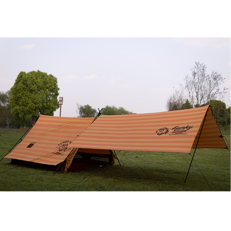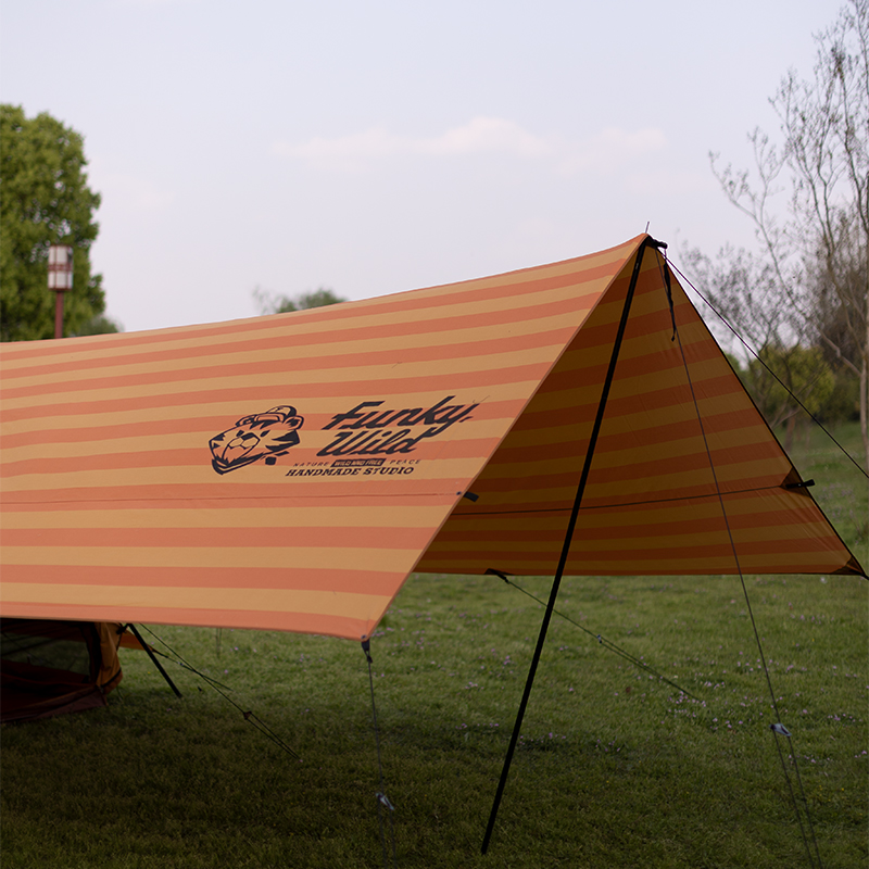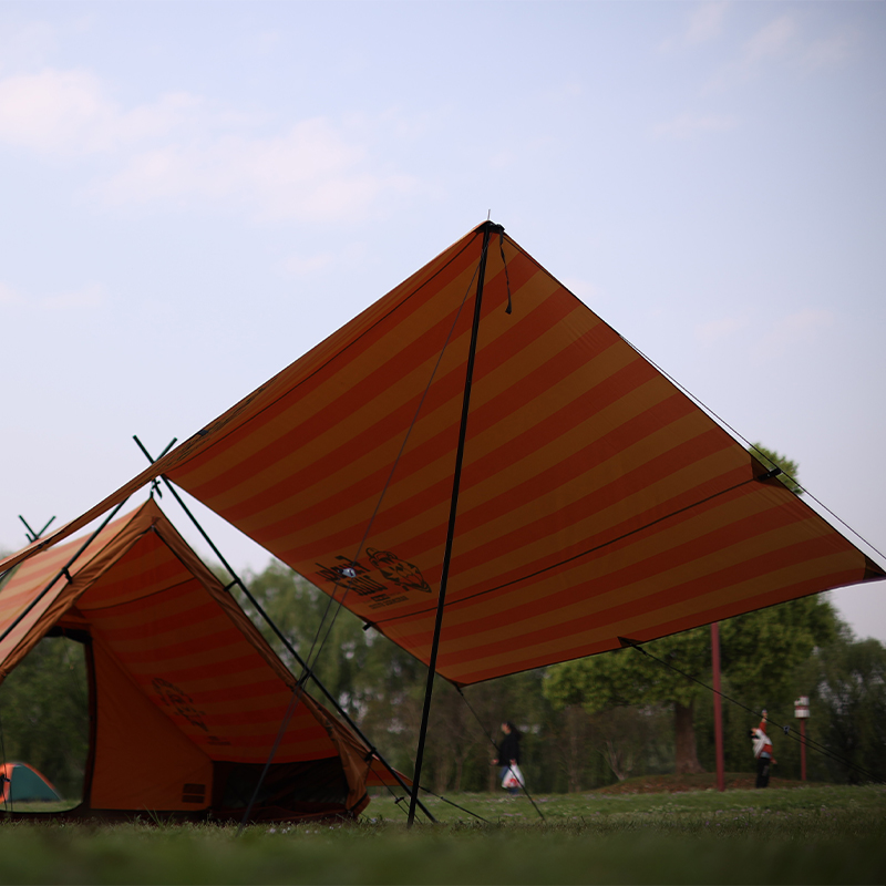 Morningstar Large Area Tiger Stripe Orange Tarp Sun-Shading and Rain-Proof Canopy