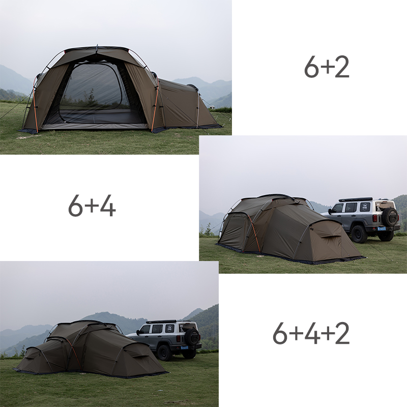Morningstar Outdoor Safe House Self-Standing Tunnel Tent Exquisite Camping Two Bedrooms and One Living Room Professional Camping Equipment